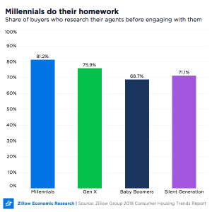 Older generations also research their agents, but at lower rates than millennials: 75.9 percent of Gen X buyers do at least one of the above, as do 68.7 percent of Boomers and 71.1 percent of the Silent Generation.